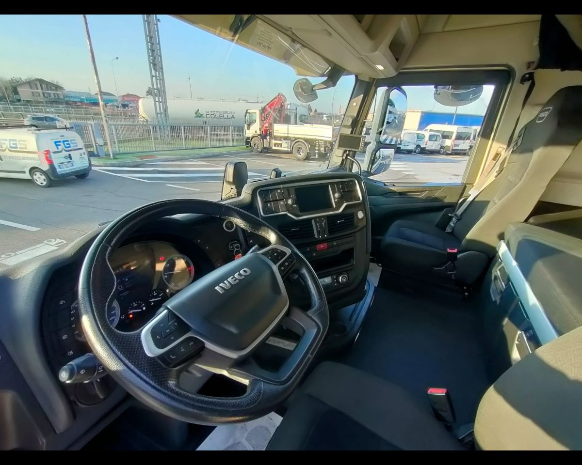 TRATTORE S-WAY AS440S49 T/FP-LT con le seguenti caratteristiche, Telaio WJMM62AU50C466516 Prim.immatricolazione 3/2022 km272.271 Passo 3790mm, Normativa inquinamento EURO 6, Motore con 490cv/357kw / 12.882cc, Cambio automatico, Rallentatore idraulico intarder, Bloccaggio differenziale, Ive-conect con schermo 7 pollici e navigatore, 2 serbatoi lato dx 580lt e sx 430lt , Cruise control, Climatizzatore automatico, Raffrescatore da fermo, Vetri e specchietti elettrici, Cerchi in ferro, Frigorifero + cassettone termico, Sospensione pneumatica Anteriore e Posteriore, Sedile guida gran comfort riscaldato/raffrescato, Visiera ,Webasto, Due letti ,tromba monotonale dietro calandra, Spoiler e deflettori, Pneumatici anteriori 355/50R22.5 posteriori 295/60R22.5